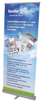 Our Roller Banners measure from 2200mm x 800mm and are printed on a 300mic polypropylene, and they are ideal for small displays in shops